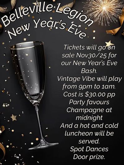 Vintage Vibes is pleased to be performing at this year's New Year's Eve celebration at the Belleville Legion. Please contact the Belleville Legion for full details and to reserve your tickets!